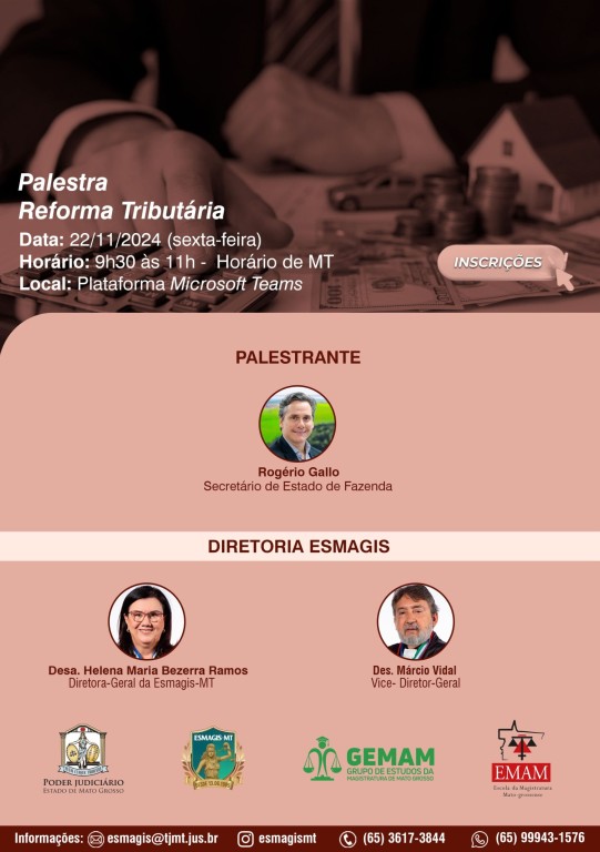 O secretário de Fazenda do Estado de Mato Grosso, Rogério Gallo, participa nesta sexta-feira (22/11), das 9h às 11h, da palestra Reforma Tributária. Ele abordará