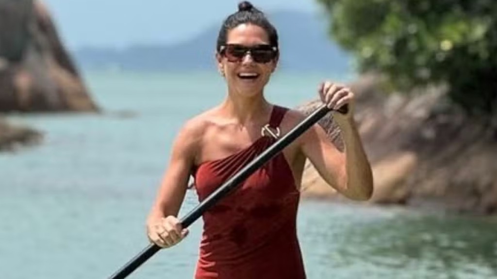 Thais Fersoza, de 40 anos, aproveitou o dia de sol para se divertir praticando stand up paddle e compartilhou o momento com seus seguidores nas redes sociais