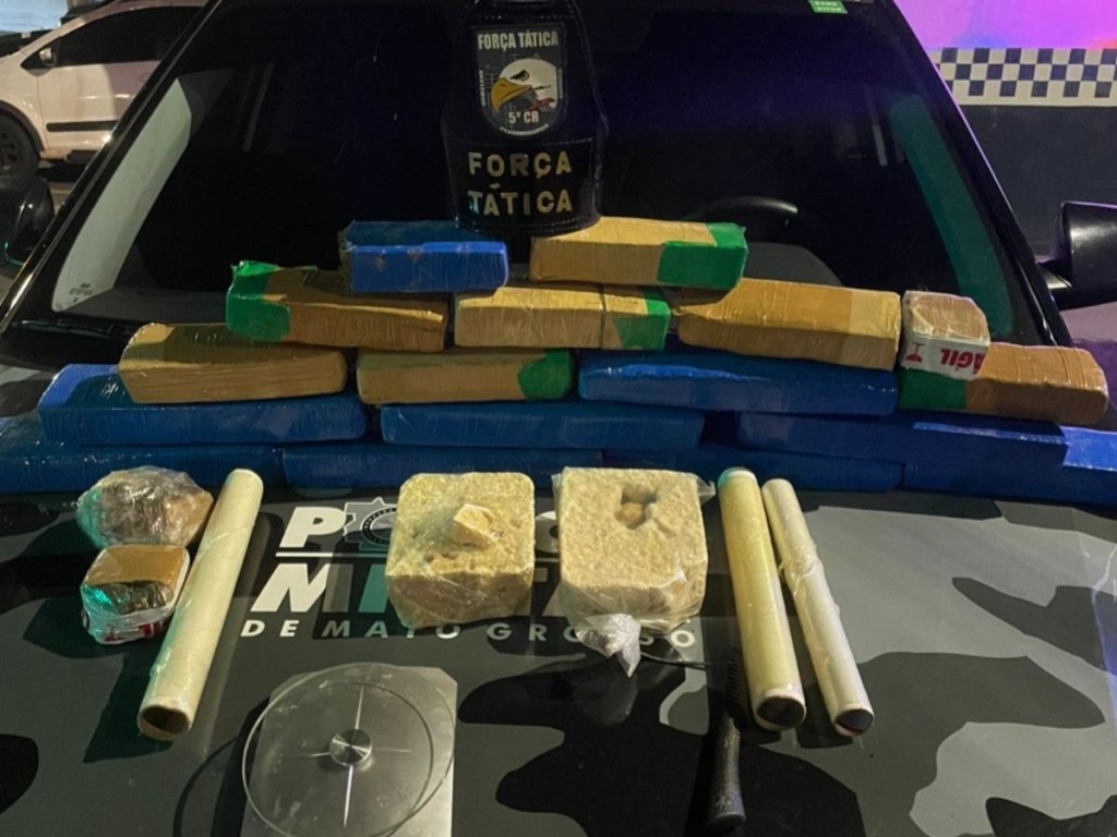 Equipes da Força Tática localizaram e apreenderam 18 tabletes, entre substâncias análogas a maconha e pasta base de cocaína, em Barra do Garças. Os entorpecentes