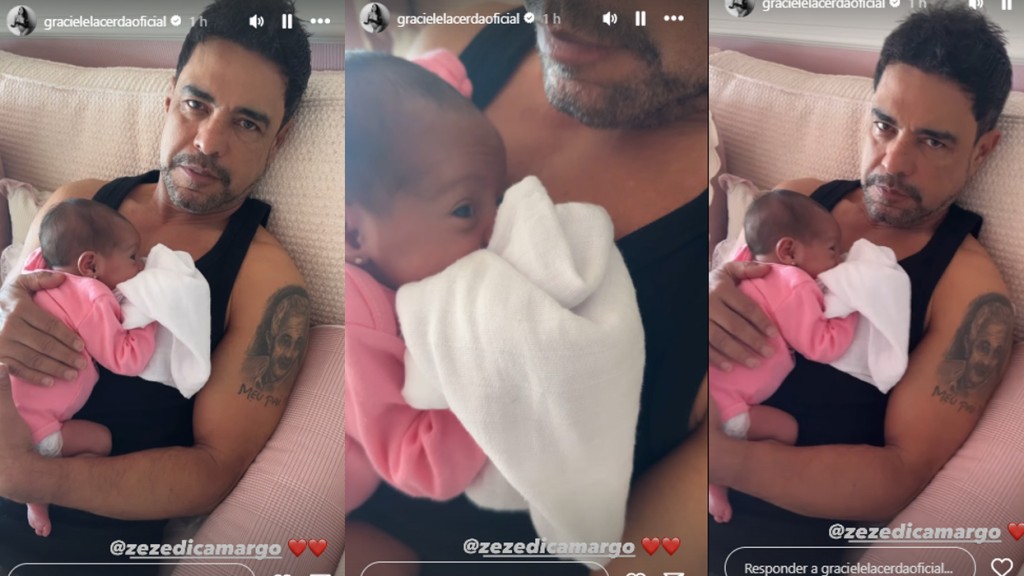 Graciele Lacerda exibe momento paizão de Zezé Di Camargo com a pequena Clara, primeira filha do casal. Nos stories do Instagram, ela contou que o