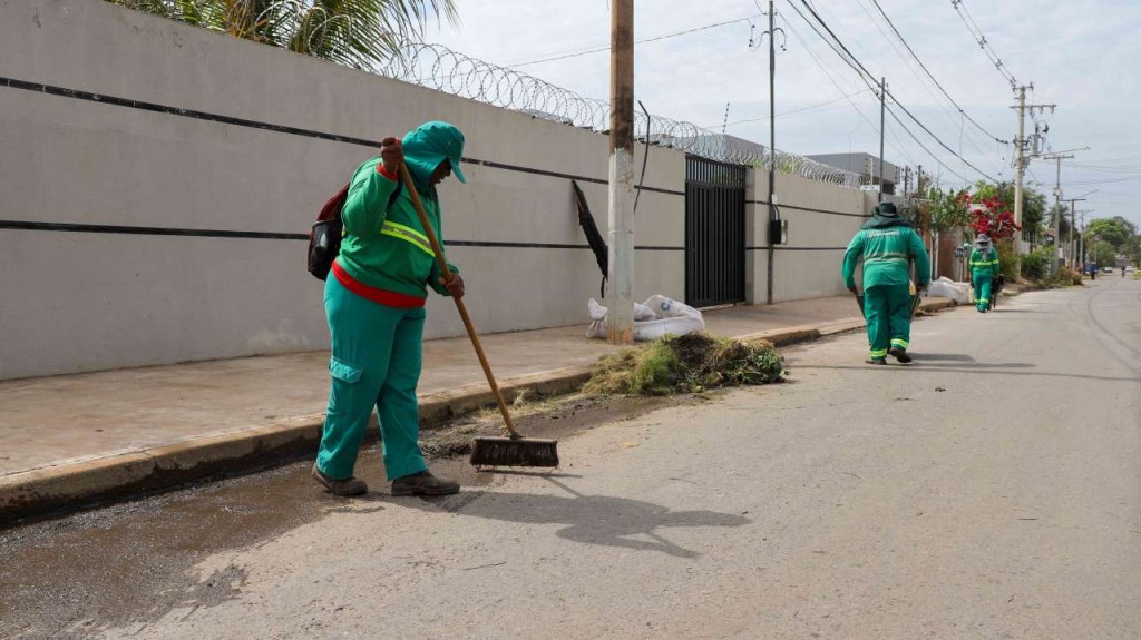As equipes executam serviços de roçagem, capinação, retirada de bolsões de lixo, pintura de meio-fio, manutenção e apoio à iluminação pública, além de ações de