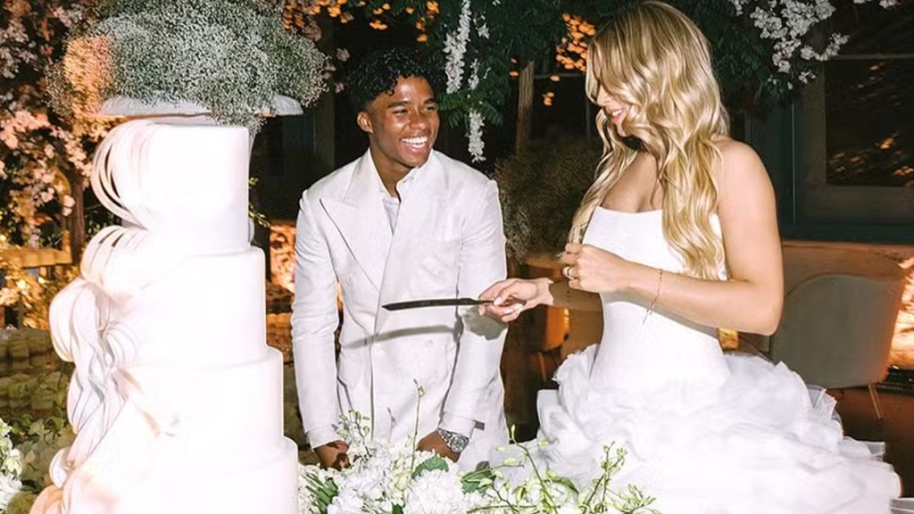 Gabriely Miranda, de 22 anos, publicou nesta terça-feira (5), um novo video da celebração de seu casamento com o jogador Endrick, de 19, realizado no