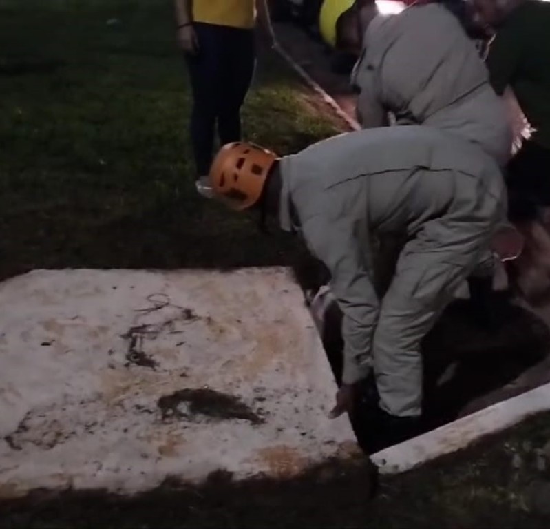 Bombeiros resgatam filhote de cachorro que estava dentro de bueiro