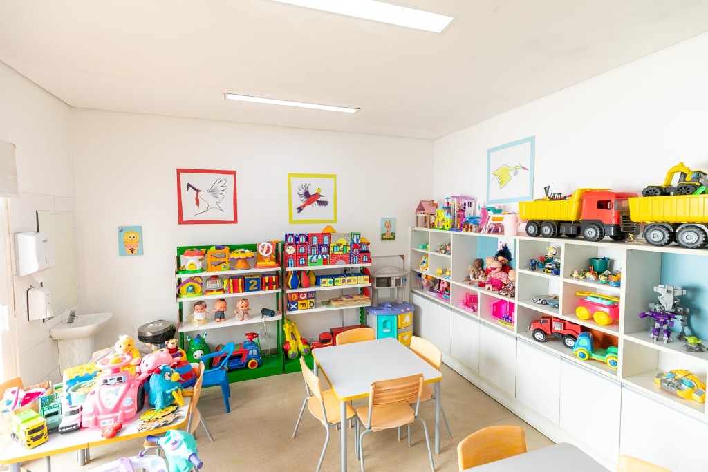 No Hospital Municipal de Cuiabá, a brinquedoteca conta com bancos e cercas coloridas, paredes decoradas com desenhos de peixes e cavalos-marinhos de plástico e, também, espaços que incentivam a recuperação da saúde dos pequenos logo após a alta.