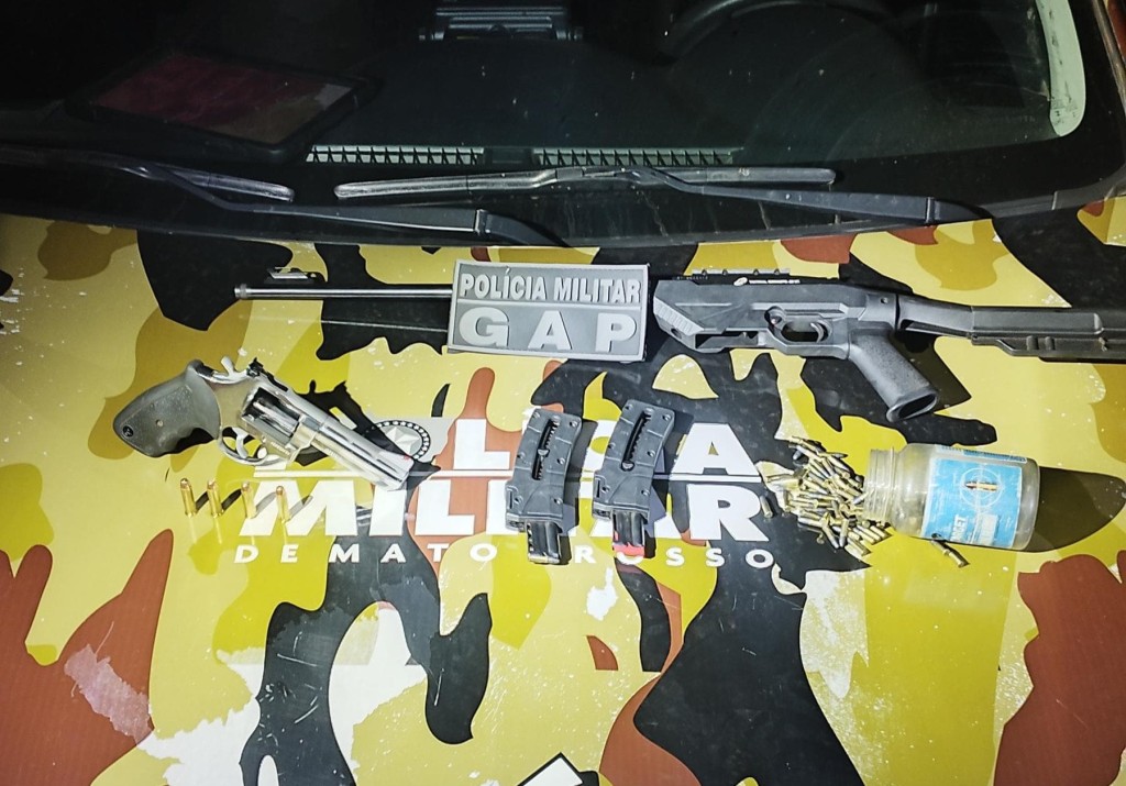 Policiais militares da Patrulha Rural, do 11º Batalhão de Cláudia, apreenderam um revólver calibre 38, um rifle calibre 22, 120 munições e uma case durante abordagem na noite desta segunda-feira (07.10), na MT-423. Na ação, um homem, de 23 anos, foi preso em flagrante por porte ilegal de arma de fogo.