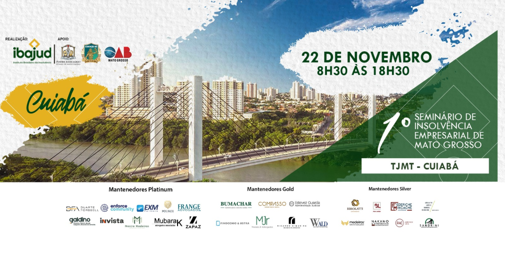 Estão abertas as inscrições para o 1º Seminário de Insolvência Empresarial de Mato Grosso, que ocorrerá no próximo dia 22 de novembro, em Cuiabá. Promovido pelo Instituto Brasileiro da Insolvência (Ibajud), em parceria com o Tribunal de Justiça de Mato Grosso (TJMT) por meio da Escola Superior da Magistratura de Mato Grosso (ESMAGIS-MT) e da Ordem dos Advogados do Brasil – Seccional Mato Grosso (OAB-MT), por meio da Escola Superior da Advocacia, o evento reunirá especialistas de renome nacional para discutir os desafios da recuperação e falência corporativa no Brasil.